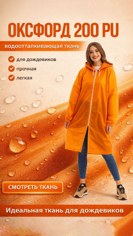 Ткань Оксфорд 200 D WR/PU 77+/-5гр.м2 рул 100м гладь
